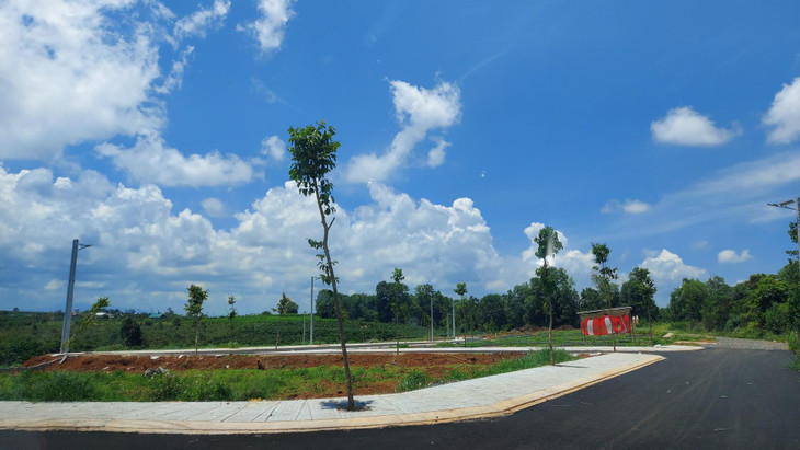 | Đồi chè ven đường thuộc xã Đạm B'ri bị phân thành mấy chục lô đất nền |