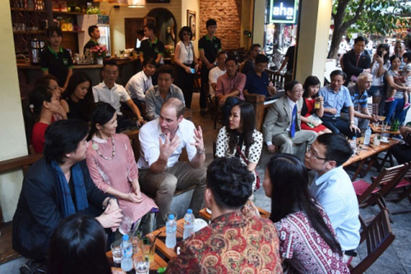 Mặc chiếc sơ mi xanh dương kèm blazer, phong thái trẻ trung, linh hoạt, pha chút hài hước, trong khoảng 40 phút, Hoàng tử Anh đã trao đổi nhiều vấn đề với khán giả, hầu hết thuộc thế hệ trẻ. Đây là một sự kiện trong chuyến thăm Việt Nam kéo dài hai ngày của Hoàng tử William, với trọng tâm là kêu gọi nỗ lực chống buôn bán động vật hoang dã.