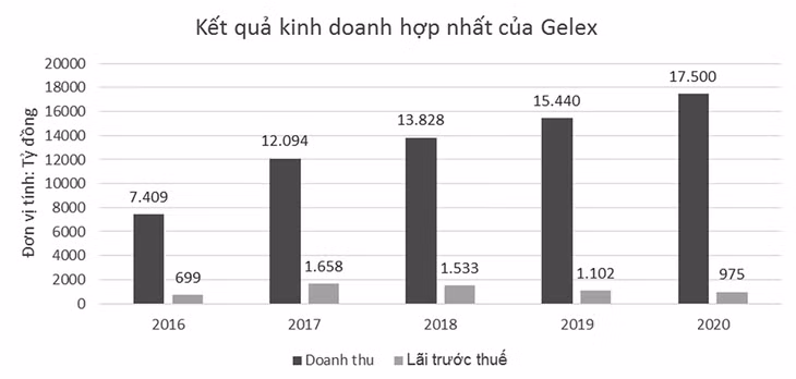 Chia sẻ tại ĐHĐCĐ, ban lãnh đạo Gelex cho biết, doanh thu thuần cả năm 2020 của Tổng công ty đã hoàn thành kế hoạch, dự kiến đạt 17.500 tỷ đồng, tăng 14% so với năm ngoái. Lợi nhuận trước thuế ước vượt 33% kế hoạch đề ra, đạt 975 tỷ đồng, bằng 90% so với năm ngoái.