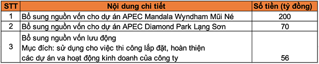 Số tiền thu được cũng sẽ bổ sung nguồn vốn lưu động cho công ty. Thời gian do HĐQT lựa chọn thời điểm thích hợp trong năm 2020-2021.