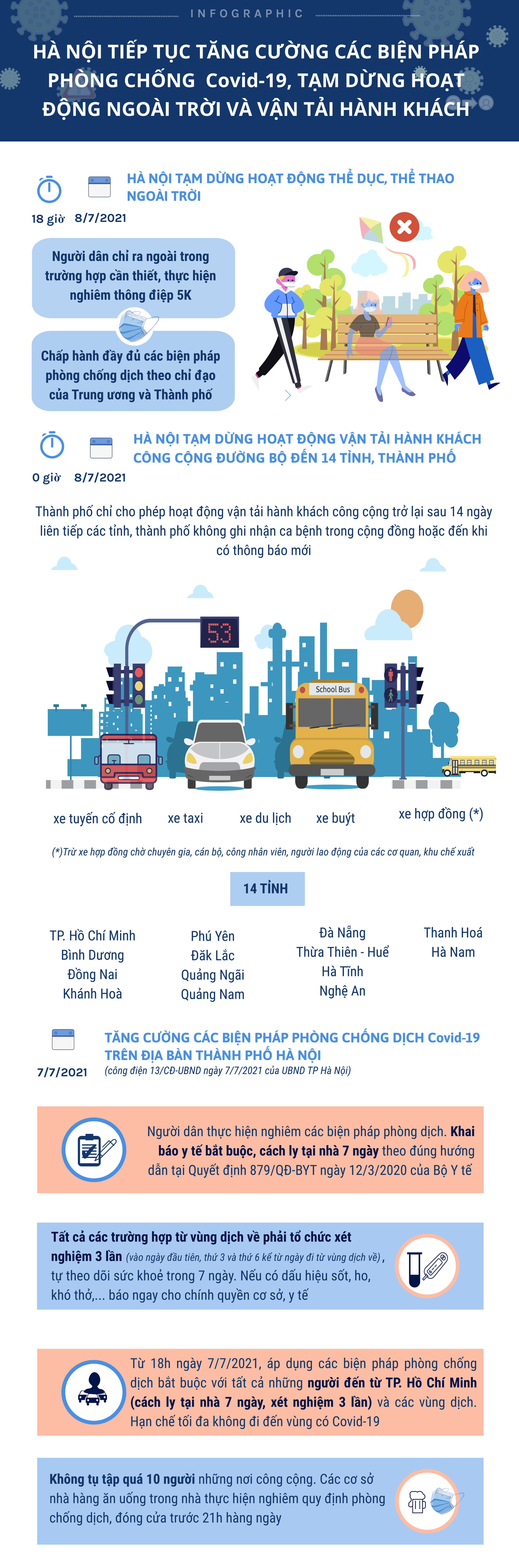 Infographic: Hà Nội tăng cường biện pháp phòng Covid-19, tạm dừng hoạt động ngoài trời và vận tải hành khách