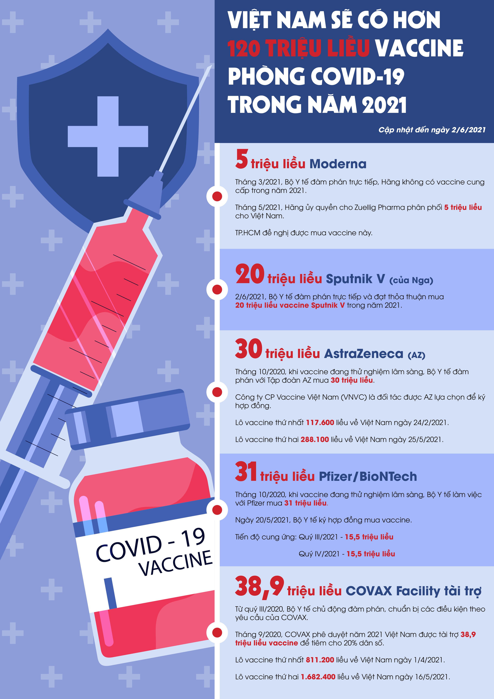[Infographic] Lịch trình hơn 120 triệu liều vaccine Covid-19 sẽ về Việt Nam
