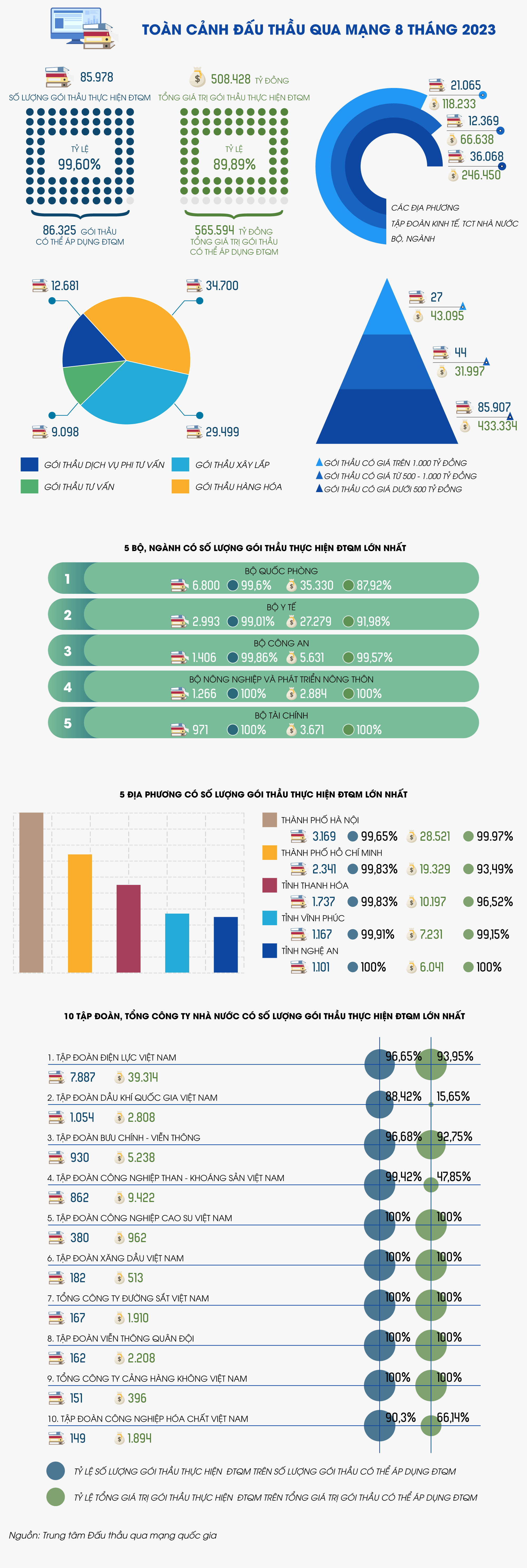 [Infographic] Toàn cảnh đấu thầu qua mạng 8 tháng đầu 2023