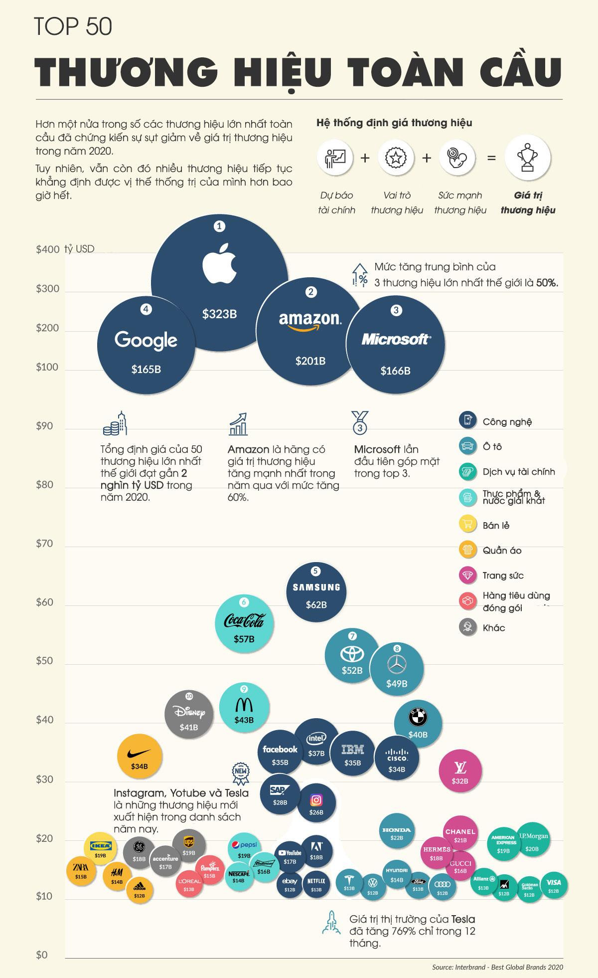 Trong khi đó, Google đã bị đánh bật khỏi top 3 thương hiệu giá trị nhất thế giới, sau 6 năm liên tiếp đứng ở vị trí thứ 2 (xếp sau Apple). Hiện tại, thương hiệu của Google được định giá 165,44 tỷ USD, giảm 1% so với năm ngoái và xếp ở vị trí thứ 4.