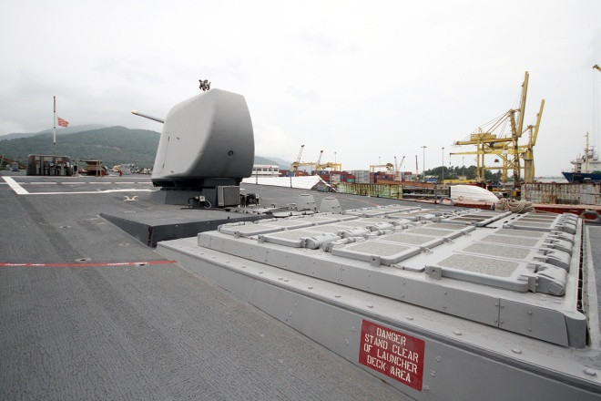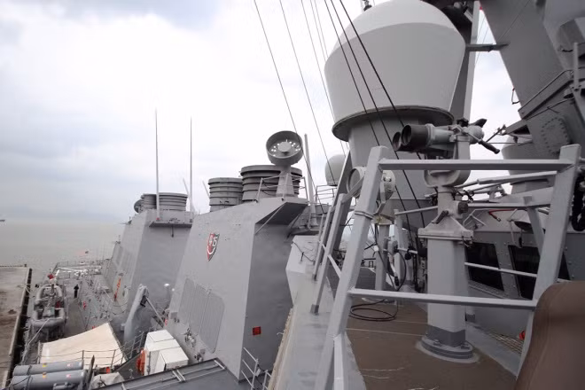Sân đỗ trực thăng được bố trí ở boong sau USS John S. McCain.