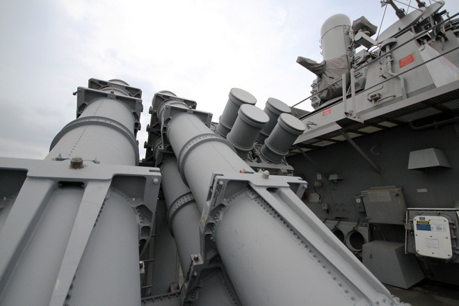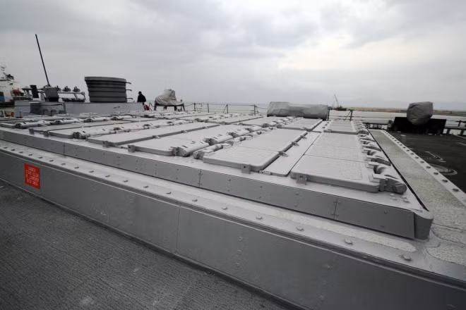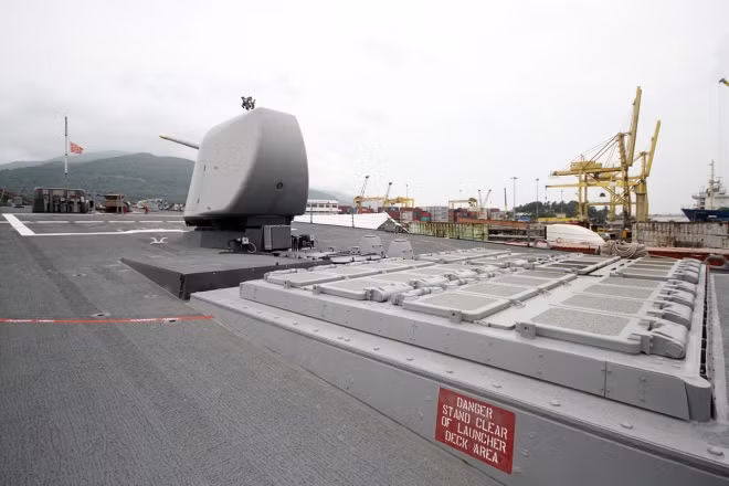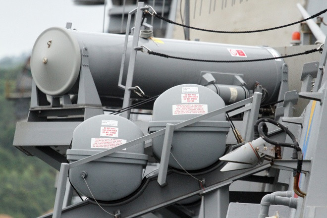 Tên lửa, ngư lôi trang bị hai bên hông tàu.
