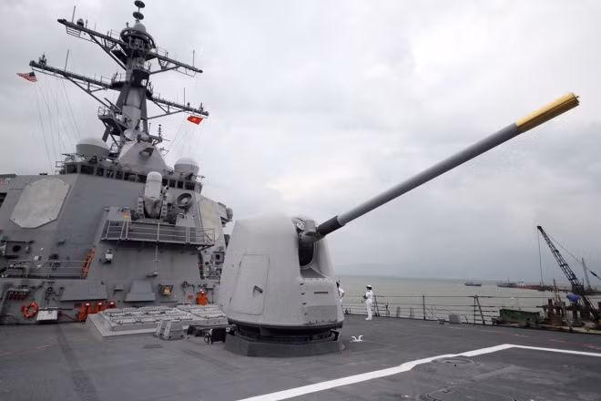 Súng MK 45 5 inch/54 caliber có tầm bắn 12 hải lý. USS John S.