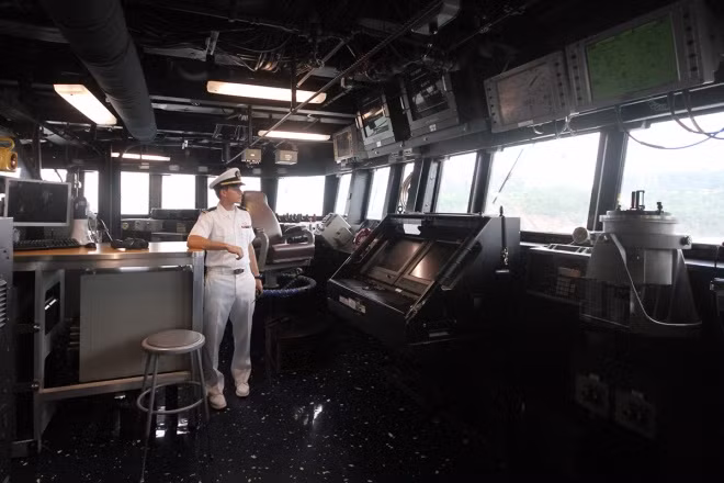 Khu vực làm việc chính của sĩ quan trên tàu với nhiều máy móc hiện đại.