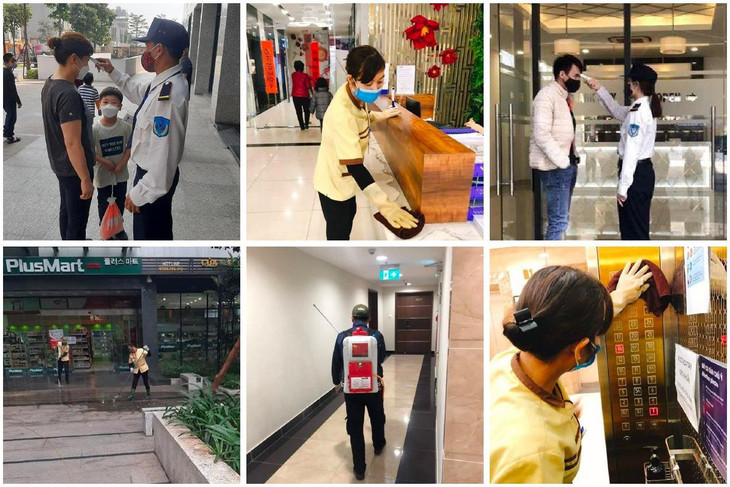 Từ những việc nhỏ như yêu cầu cư dân, khách vào tòa nhà phải đeo khẩu trang, rửa tay bằng nước rửa tay khô trước và sau khi bấm thang máy; đo nhiệt độ cư dân và khách ra vào tòa nhà… đến những việc khử trùng thang máy 60 phút/lần, tổng vệ sinh môi trường đều khiến đội ngũ vận hành ở đây phải gia tăng gấp nhiều lần khối lượng công việc nhưng ai nấy đều tận tình với công việc của mình, tất cả vì sự an toàn cho cư dân.