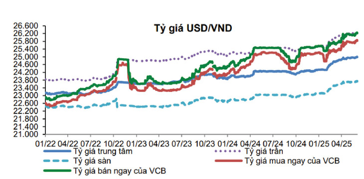 TS. Nguyễn Trí Hiếu, chuyên gia tài chính - ngân hàng cho rằng, từ nay đến cuối năm, các biến động địa chính trị và diễn biến đàm phán thuế quan giữa các nước sẽ có tác động đan xen đến tỷ giá USD/VND. Ở khía cạnh tích cực, nền kinh tế Việt Nam năm nay có xu hướng tăng trưởng tích cực, đặc biệt ở xuất khẩu và thu hút vốn FDI, Cụ thể, 5 tháng đầu năm 2025, kim ngạch xuất khẩu đạt 180,23 tỷ USD, tăng 14% so với cùng kỳ năm trước; vốn FDI đăng ký vào Việt Nam đạt 18,39 tỷ USD, tăng 51,2% so với cùng kỳ năm trước; vốn FDI thực hiện tại Việt Nam ước đạt 8,9 tỷ USD, tăng 7,9 % so với cùng kỳ năm trước, cao nhất trong 5 năm qua.