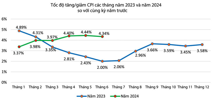 Mặt khác, theo vị chuyên gia này, tại cuộc họp ngày 8/6, Thủ tướng Phạm Minh Chính nêu rõ mục tiêu trong năm 2024 là phấn đấu tăng trưởng GDP đạt cận trên, lạm phát ở cận dưới so với mục tiêu đã đề ra (mục tiêu tăng trưởng từ 6 - 6,5% và lạm phát từ 4 - 4,5%).
