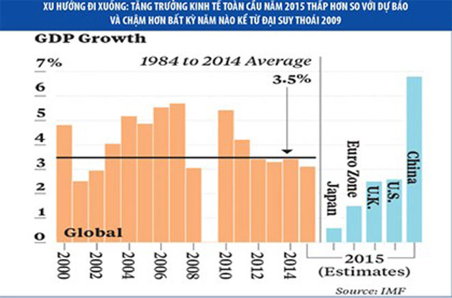 Quỹ tiền tệ quốc tế (IMF) trong tháng 10/2015 đã cắt giảm dự báo tăng trưởng kinh tế toàn cầu và bắt đầu báo cáo bán niên về triển vọng kinh tế năm 2016 bằng một lời khá ảo não: “Sự khỏe mạnh và đồng bộ của tăng trưởng kinh tế toàn cầu duy trì ở mức hạn chế”.