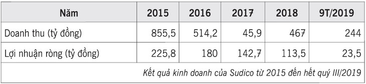 Trong khi đó, tính đến thời điểm cuối quý III/2019, tổng tài sản có tính thanh khoản cao nhất của Sudico (gồm tiền mặt, tiền gửi ngân hàng và đầu tư chứng khoán) vào khoảng 45 tỷ đồng.