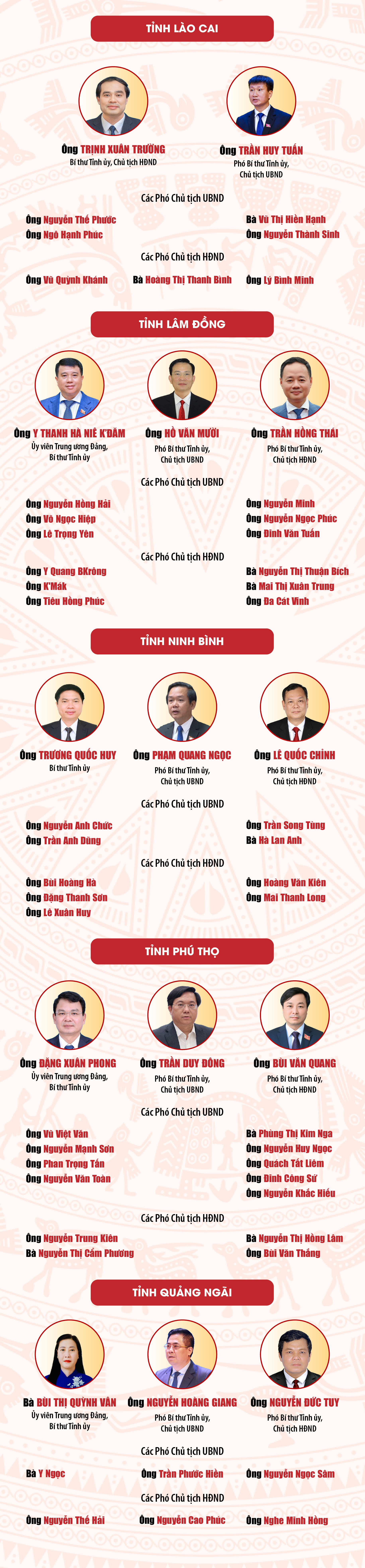 (BĐT) - Danh sách Bí thư, Chủ tịch UBND, Chủ tịch HĐND 23 tỉnh, thành phố mới thành lập sau sáp nhập.