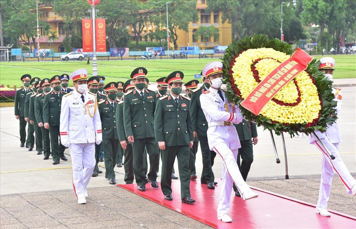 | Đoàn đại biểu Quân uỷ Trung ương và Bộ Quốc phòng tưởng niệm Chủ tịch Hồ Chí Minh. |