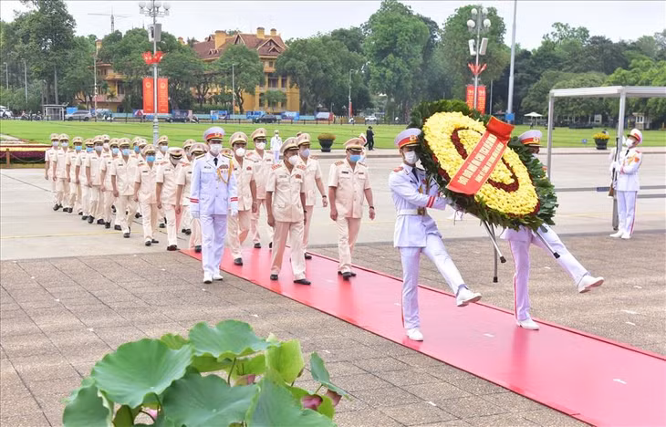 | Đoàn đại biểu Đảng uỷ Công an Trung ương và Bộ Công an tưởng niệm Chủ tịch Hồ Chí Minh. |
