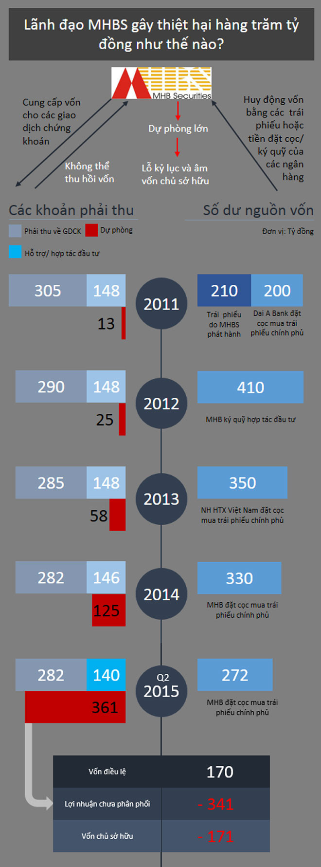 Trên thực tế, các thông tin tài chính của MHBS được công bố chi tiết từ năm 2011 đã vẽ ra con đường mà các lãnh đạo công ty này đã biến một công ty có vốn 170 tỷ đồng (từ năm 2009) thành âm 170 tỷ đồng vào giữa năm 2015.