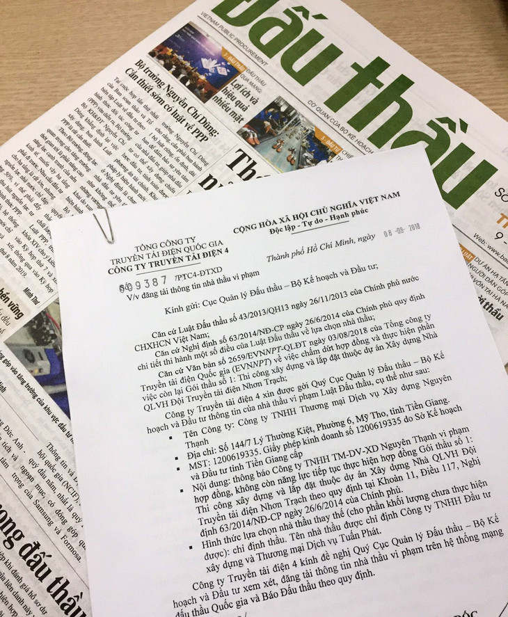 Theo Thông báo của PTC4 - chủ đầu tư, Nhà thầu Nguyên Thạnh trúng Gói thầu số 1 Thi công xây dựng và lắp đặt thuộc Dự án Xây dựng nhà quản lý văn hóa đội truyền tải điện Nhơn Trạch. Tuy nhiên, Nhà thầu Nguyên Thạnh đã vi phạm hợp đồng, không còn năng lực tiếp tục thực hiện hợp đồng.