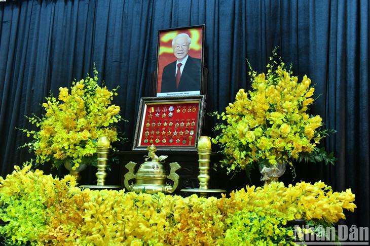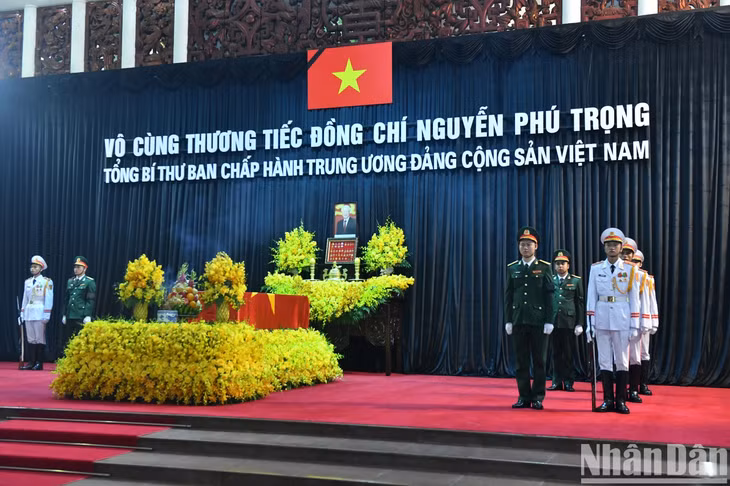 Linh cữu đồng chí Nguyễn Phú Trọng được quàn tại Nhà tang lễ Quốc gia số 5 Trần Thánh Tông, thành phố Hà Nội.