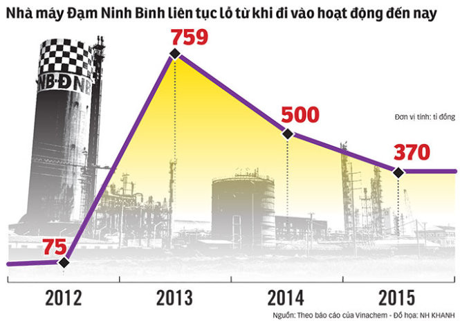 Theo báo cáo của Vinachem, năm 2012 Đạm Ninh Bình lỗ 75 tỉ đồng, năm 2013 lỗ 759 tỉ đồng, năm 2014 lỗ khoảng 500 tỉ đồng, năm 2015 lỗ trên 370 tỉ đồng.