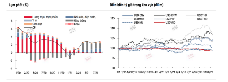 Áp lực lạm phát trong thời gian tới là chưa lớn, khi nhu cầu tiêu dùng vẫn ở mức yếu. SSI Research dự báo lạm phát trong năm 2021 ở mức 3%, thấp hơn nhiều so với lạm phát mục tiêu của Chính phủ là 4% và từ đó tạo nhiều dư địa cho chính sách tiền tệ. Trong giai đoạn khó khăn hiện tại của dịch bệnh, cũng không loại trừ trường hợp Ngân hàng Nhà nước sẽ tiếp tục nới lỏng chính sách tiền tệ trong điều kiện lạm phát được kiểm soát.