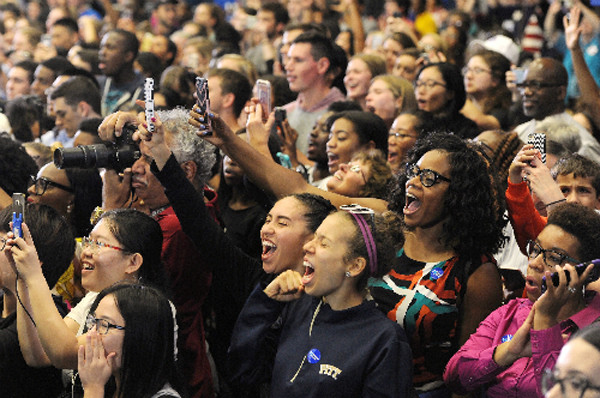 Đám đông hô vang "Đừng!" khi đệ nhất phu nhân Mỹ Michelle Obama nói rằng: "Đã sắp đến lúc gia đình tôi rời xa Nhà Trắng", trong một buổi vận động tranh cử cho Hillary Clinton ở Pittsburgh, Pennsylvania.