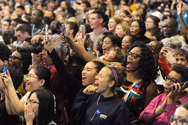 Bà Michelle Obama được chào đón như một ngôi sao nhạc rock ở cả hai trường đại học mà bà viếng thăm ở hai trung tâm đô thị của bang Pennsylvania vào ngày 28/9, theo Washington Post. Thực tế, mức độ nồng nhiệt của đám đông tại các sự kiện của đệ nhất phu nhân 52 tuổi còn cao hơn ở cuộc vận động chung của bà Clinton và thượng nghị sĩ Bernie Sanders ở bang New Hampshire vào cùng ngày.