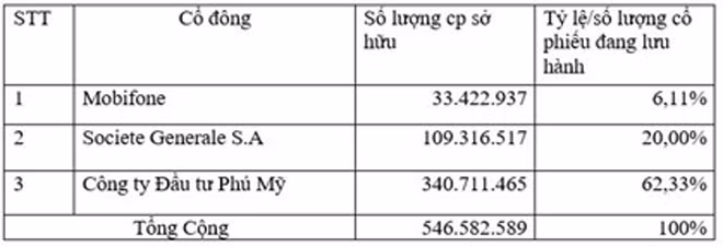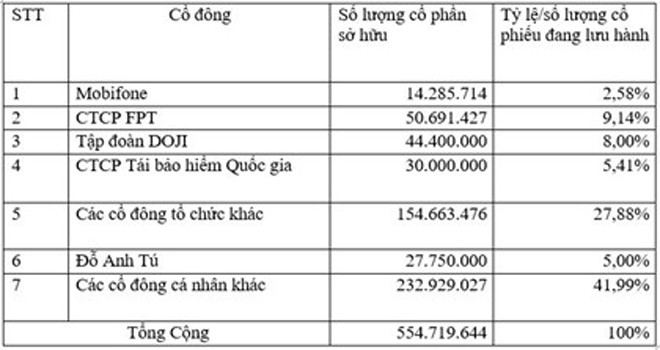 Danh sách cổ đông nắm giữ từ 5% của SeaBank tại thời điểm 30/9/2015