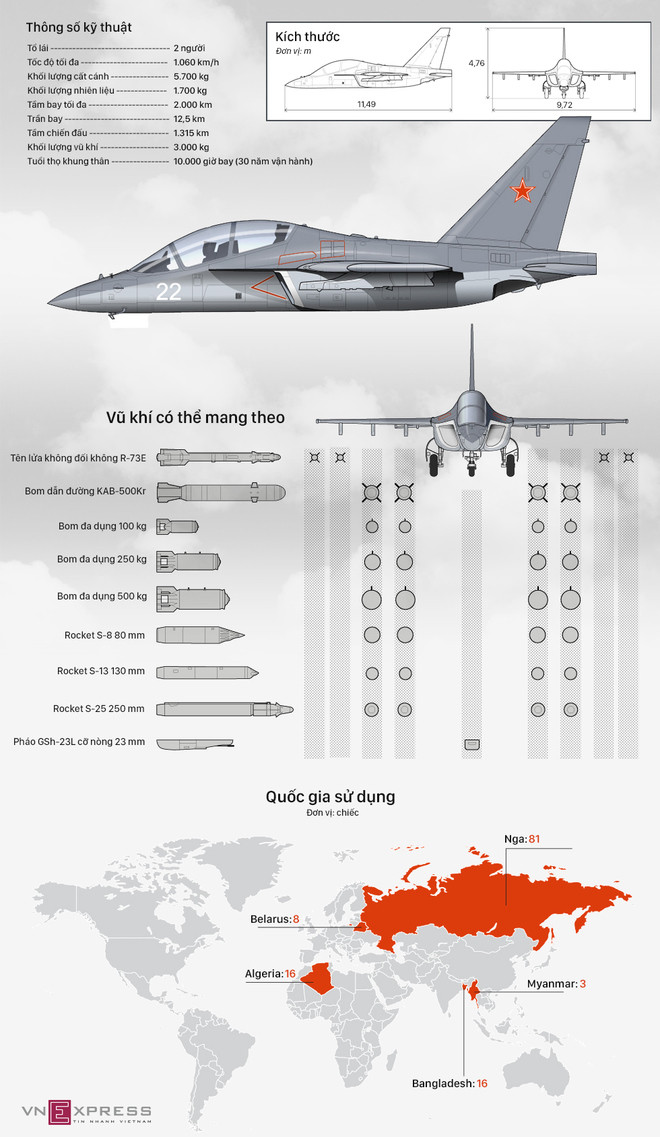 Thông số kỹ chiến thuật của Yak-130. Đồ họa: Việt Chung (Nguồn: Ria Novosti)
