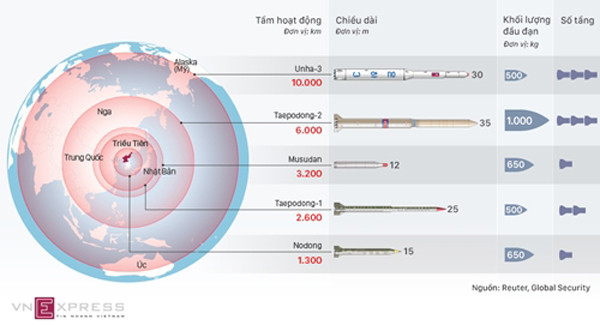 Tên lửa Musudan theo lý thuyết có tầm bắn từ 2.500 đến 4.000 km, tức có thể tấn công toàn bộ Hàn Quốc và Nhật Bản, thậm chí vươn tới căn cứ quân sự của Mỹ ở Guam.