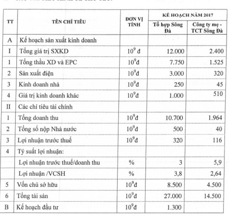 Tổng mức đầu tư năm 2017 của Tổng công ty là 1.300 tỷ đồng và đặt mục tiêu trúng thầu dự án với tổng giá trị 10.000 tỷ đồng (tương đương mức đạt được năm 2016).