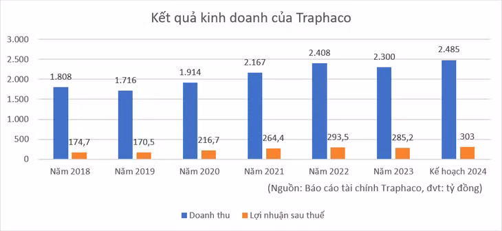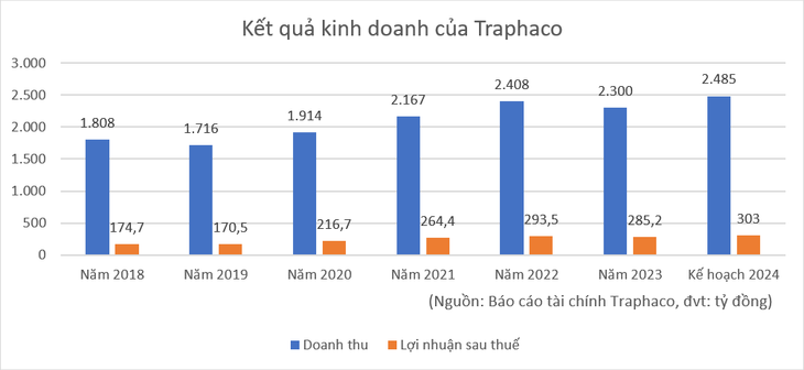 Kết thúc năm 2023, Traphaco ghi nhận 2.300 tỷ đồng doanh thu và 285 tỷ đồng lợi nhuận sau thuế, đều giảm khoảng 3% so với thực hiện năm 2022.
