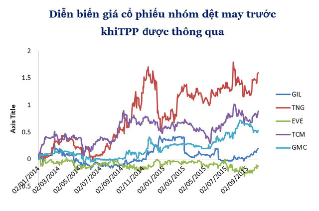 Với những dự báo lạc quan đến từ nhiều phía, nhóm cổ phiếu ngành dệt may đã có những giai đoạn tăng trưởng rất mạnh. Từ thời điểm năm 2014, cho đến ngày hiệp định TPP chính thức được thông qua, nhóm cổ phiếu ngành dệt may có mức tăng trưởng mạnh. Ngoại trừ EVE giảm 12%, các cổ phiếu như GIL của Công ty Cổ phần Sản xuất Kinh doanh Xuất nhập khẩu Bình Thạnh (HOSE) tăng 20%, TNG của Công ty Cổ phần Đầu tư và Thương mại TNG (HNX) tăng 160%, TCM của Công ty Cổ phần Dệt may - Đầu tư - Thương mại Thành Công (HOSE) tăng 89% và GMC của Công ty Cổ phần Sản xuất Thương mại May Sài Gòn (HOSE) tăng khoảng 53%.