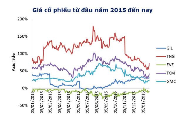 Thế nhưng, điều kỳ lạ xảy ra là tính từ thời điểm TPP thông qua đó cho đến nay, giá cổ phiếu ngành này bất ngờ đảo chiều mạnh. Trong nhóm vốn hoá lớn nhất, ngoại trừ GIL tăng 8% từ mức giá 31,5 nghìn đồng lên 34,1 nghìn đồng, các cổ phiếu khác đều giảm khá mạnh. Đáng chú ý là TCM, cái tên được kỳ vọng rất lớn từ TPP giảm 27% từ mức giá 38 nghìn đồng/cổ phiếu xuống còn 28 nghìn đồng/cp, GMC cũng giảm khoảng 20%, giảm mạnh nhất là TNG với mức 34%.