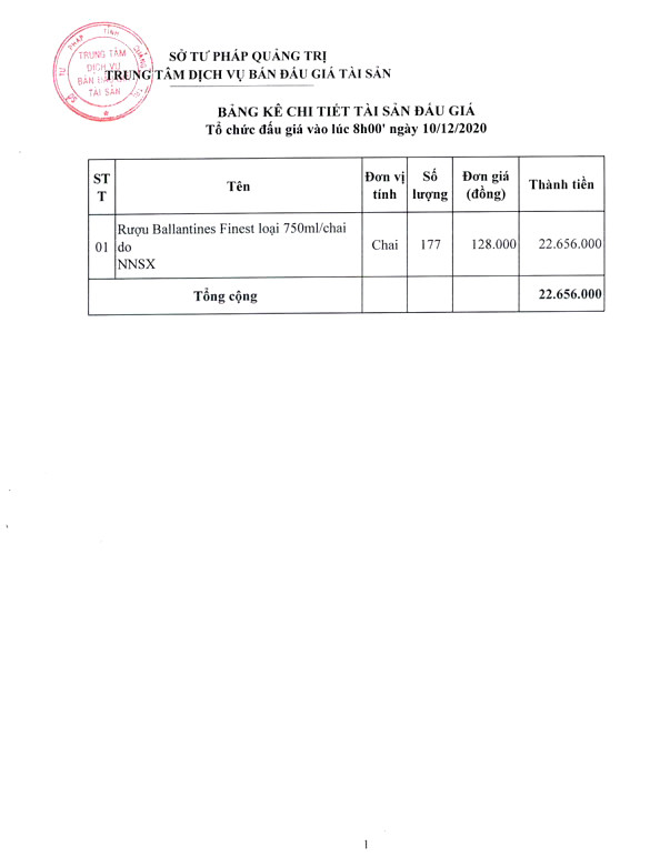 1. Tổ chức đấu giá tài sản: Trung tâm Dịch vụ Bán đấu giá tài sản Quảng Trị, đường Điện Biên Phủ, thành phố Đông Hà, tỉnh Quảng Trị.
