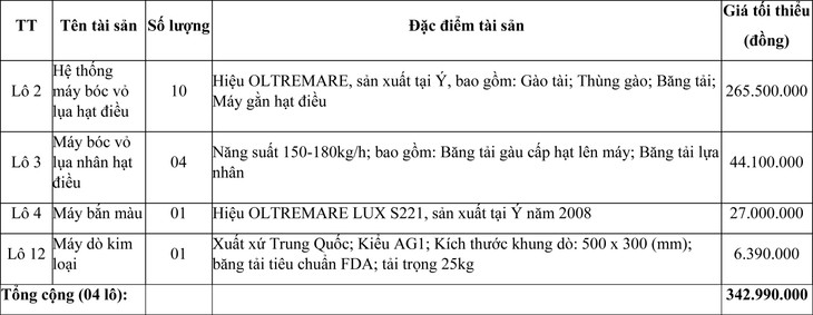 1. Tài sản đấu giá: Máy móc thiết bị của Công ty Cổ phần xuất khẩu nông sản Ninh Thuận (04 lô), cụ thể như sau: