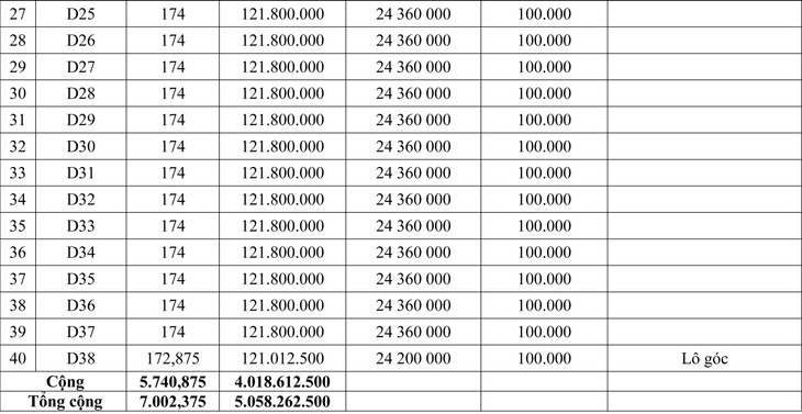 - Tổng số lô đất, diện tích đất đấu giá: 40 lô với tổng diện tích 7.002,375 m2; (kèm theo danh sách chi tiết).