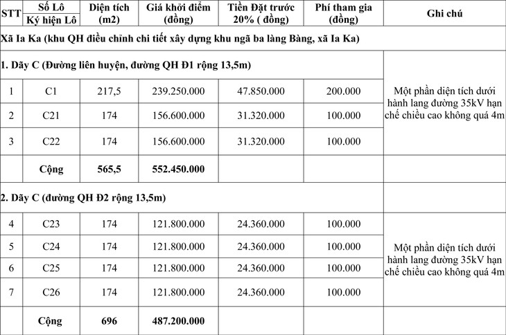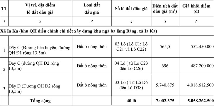 - Địa chỉ đất đấu giá: Xã Ia Ka (khu QH điều chỉnh chi tiết xây dựng khu ngã ba làng Bàng, xã Ia Ka)