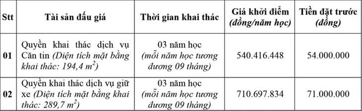 Điều kiện Các khách hàng có nhu cầu, không thuộc các đối tượng quy định tại Khoản 4 Điều 38 Luật Đấu giá tài sản cùng các quy định pháp luật khác có liên quan (nếu có); đáp ứng và/hoặc cam kết đáp ứng các nội dung về khai thác của Nhà trường (Chi tiết tham khảo tại hồ sơ đấu giá).