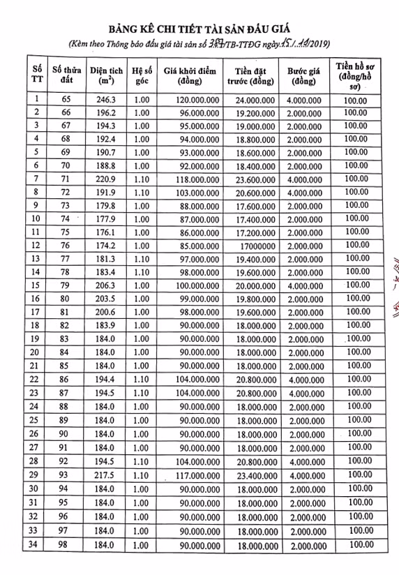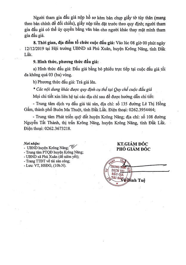 Ngày 12/12/2019, đấu giá quyền sử dụng 74 thửa đất tại huyện Krông Năng, tỉnh Đắk Lắk