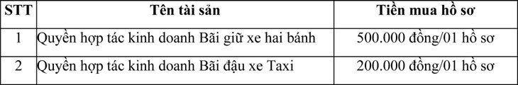 b) Tiền đặt trước: 05% giá khởi điểm tài sản (Mức thu = 05% x giá khởi điểm của 01 tháng x thời gian hợp tác kinh doanh).