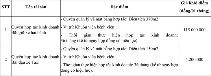 c) Đặc điểm tài sản và giá khởi điểm: Gồm 02 quyền hợp tác kinh doanh