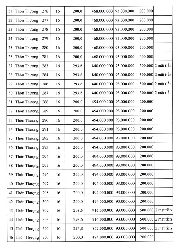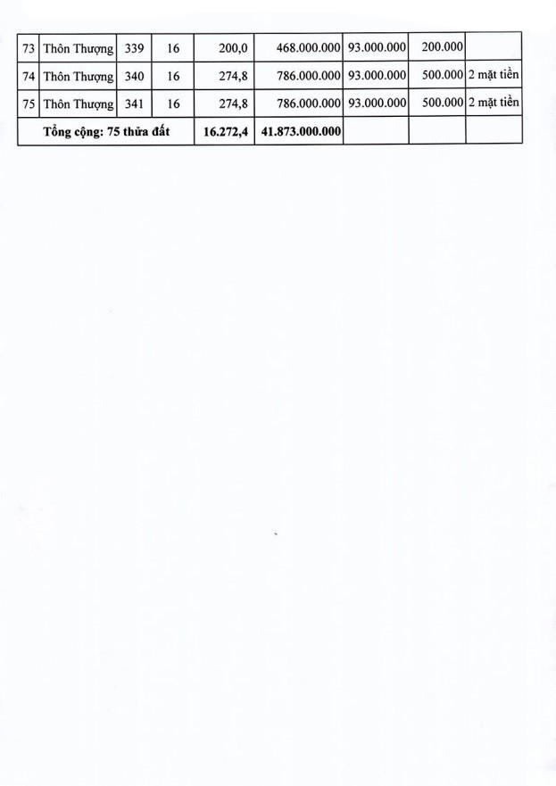 - Xã Trường Xuân: 11 thửa đất; Diện tích từ 204,5m2/thửa đến 250,0m2/thửa; Giá khởi điểm từ 41.000.000,đồng/thửa đến 64.000.000,đồng/thửa.