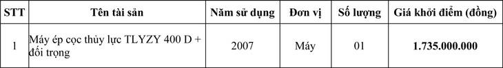 Nguồn gốc tài sản đấu giá: Tài sản thanh lý của Công ty TNHH MTV Dịch vụ Công ích Quận 4.