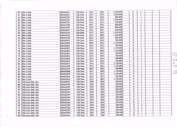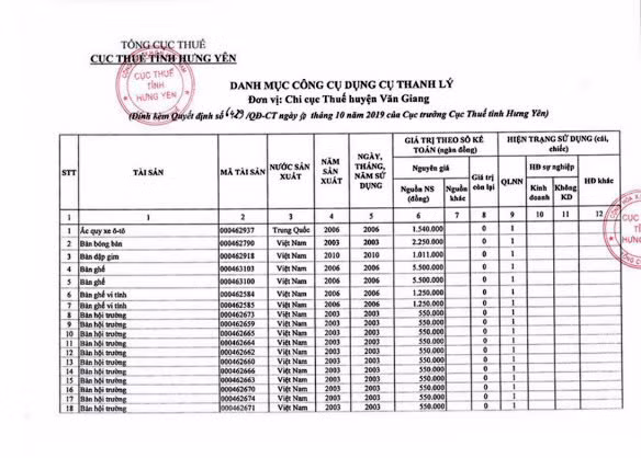 1. Tài sản bán đấu giá: Toàn bộ tài sản và công cụ dụng cụ đã qua sử dụng không còn giá trị sử dụng (Chi tiết theo danh mục tài sản đính kèm)