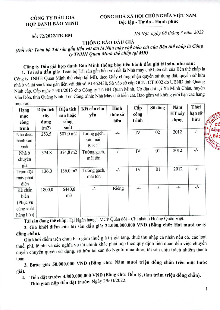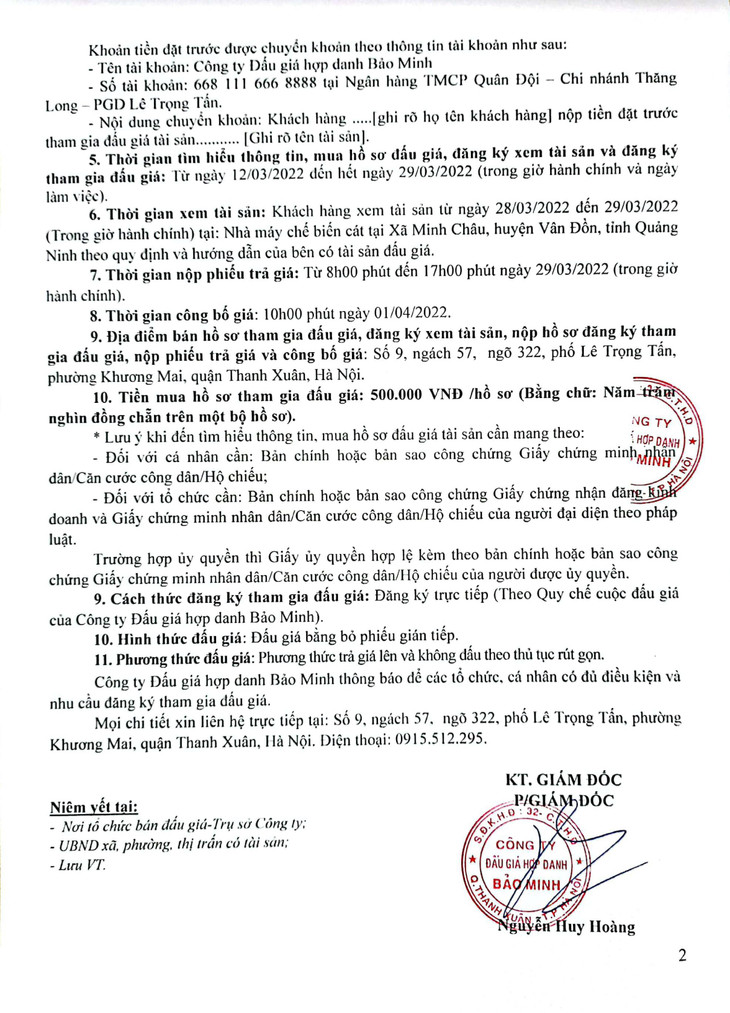 Tổ chức đấu giá tài sản: Công ty đấu giá hợp danh Bảo Minh