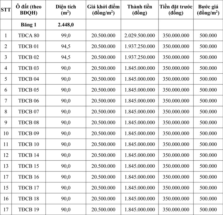 - Tiền mua hồ sơ: 500.000 đồng/ô đất.