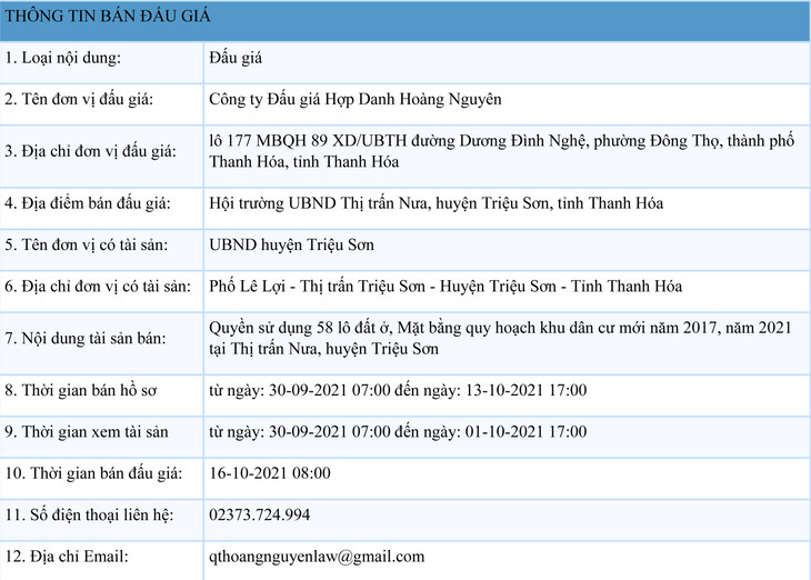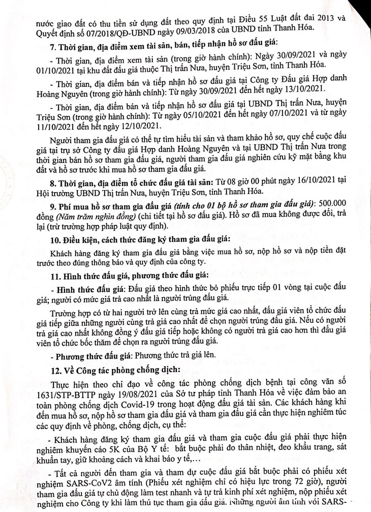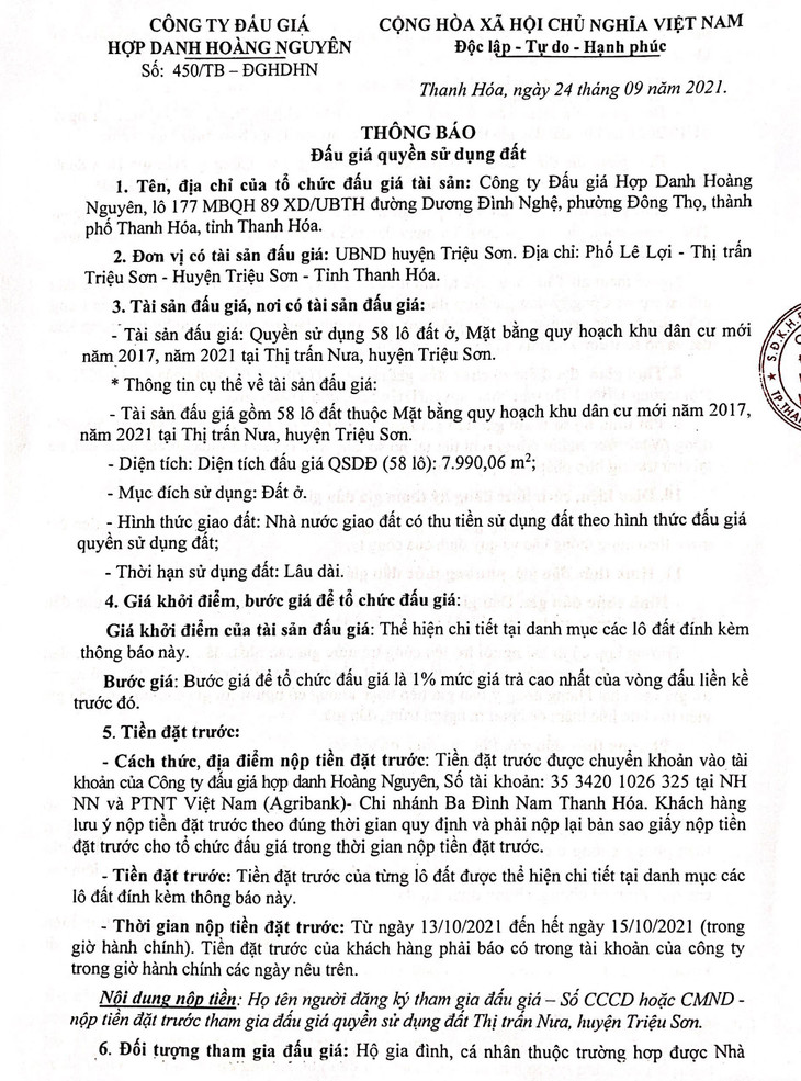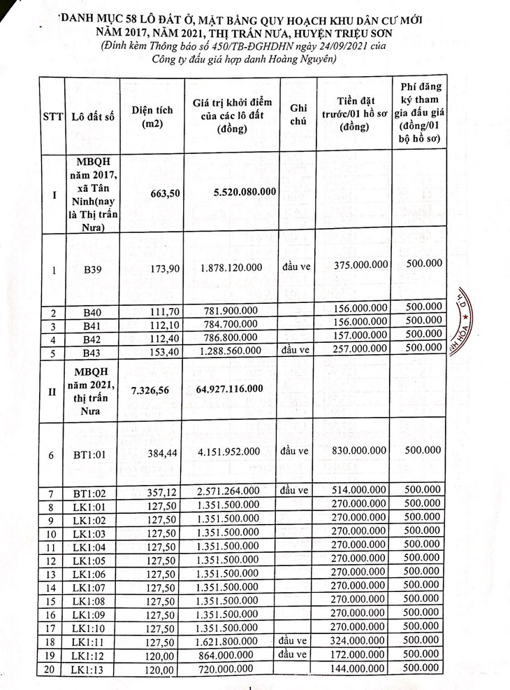 Quyền sử dụng 58 lô đất ở, mặt bằng quy hoạch khu dân cư mới năm 2017, năm 2021 tại Thị trấn Nưa, huyện Triệu Sơn