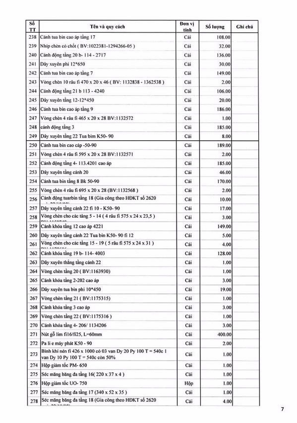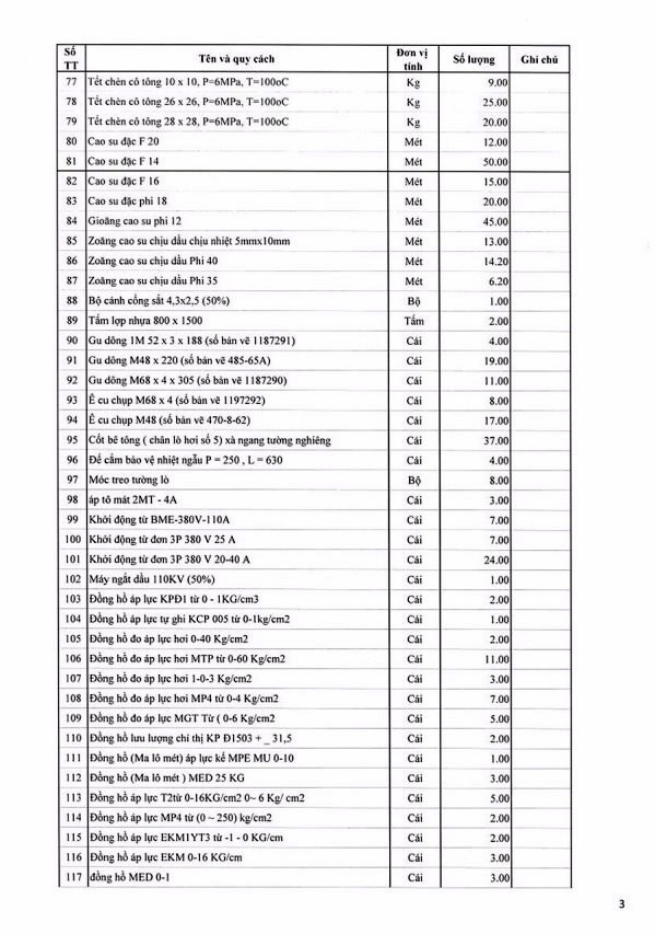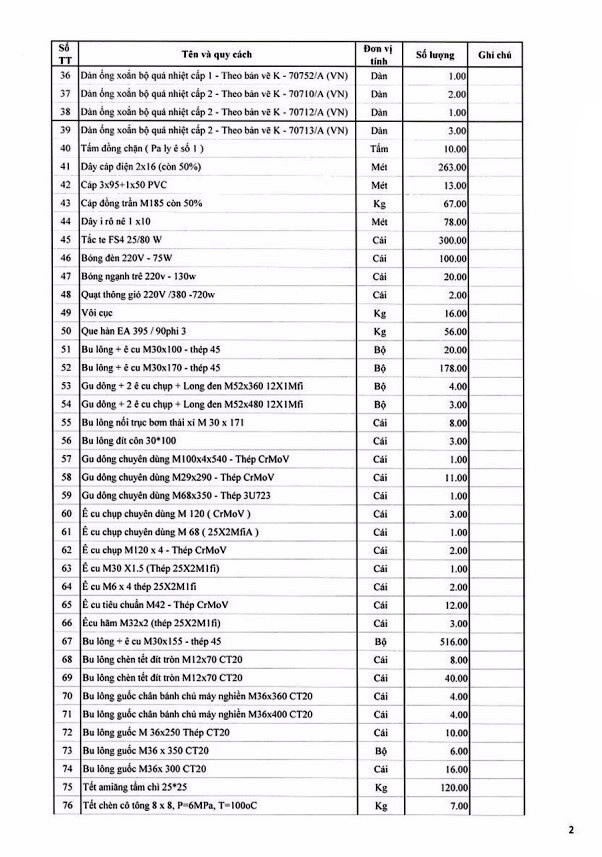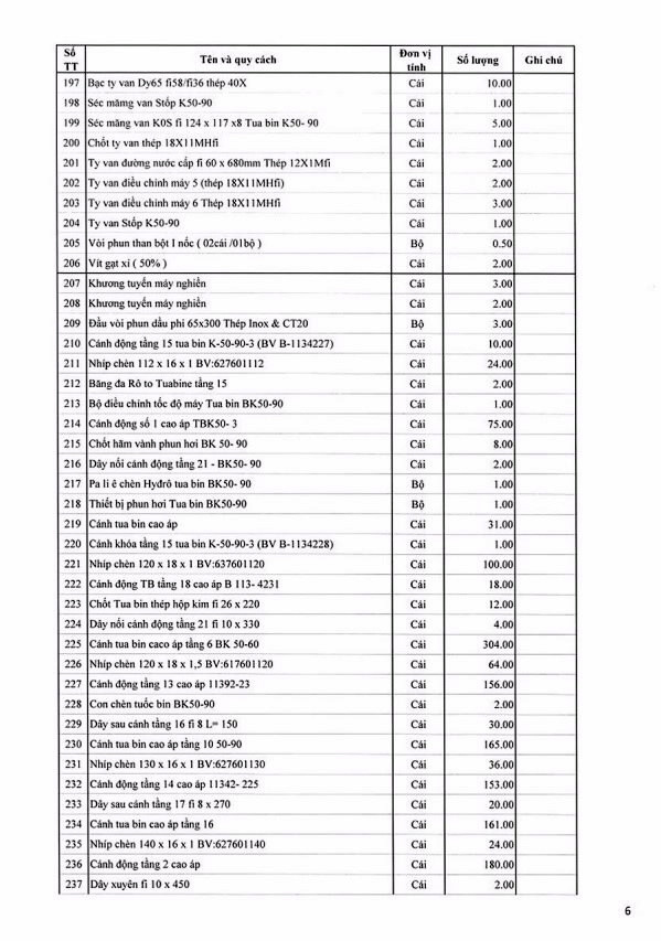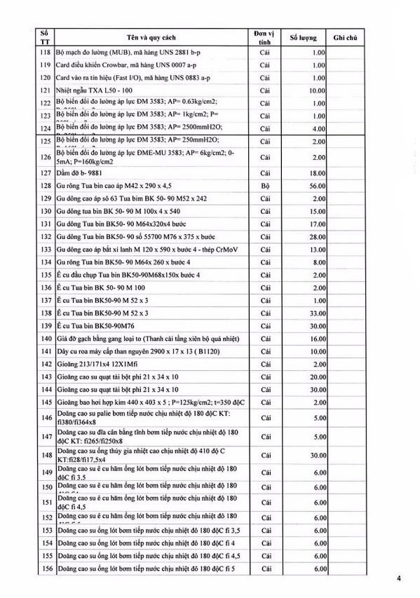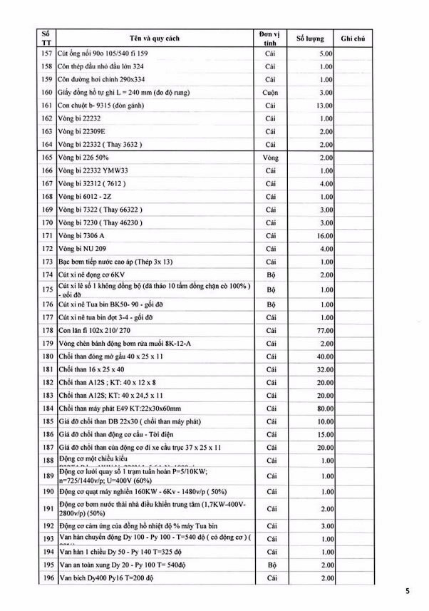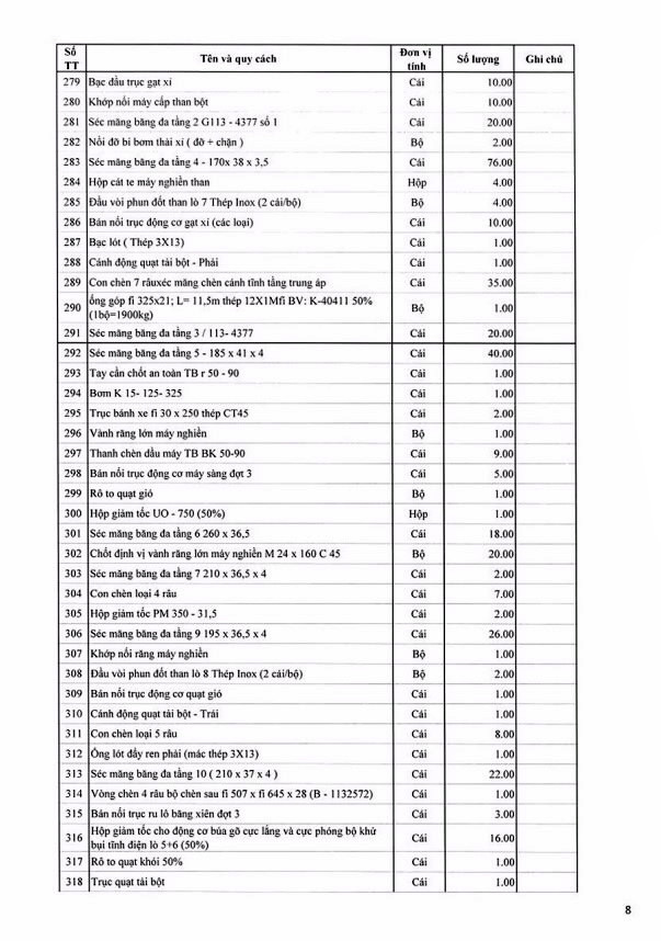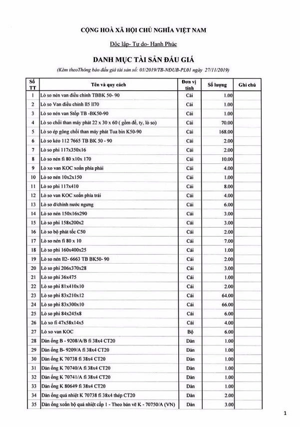 Tổ chức đấu giá tài sản thanh lý là lô vật tư thiết bị dự phòng NM 110MW không có nhu cầu sử dụng của Công ty Nhiệt điện Uông Bí có bảng kê chi tiết kèm theo (bán cả lô, không bán riêng lẻ từng tài sản).
