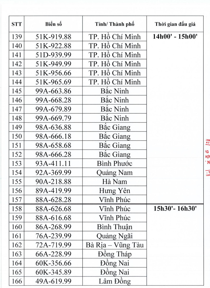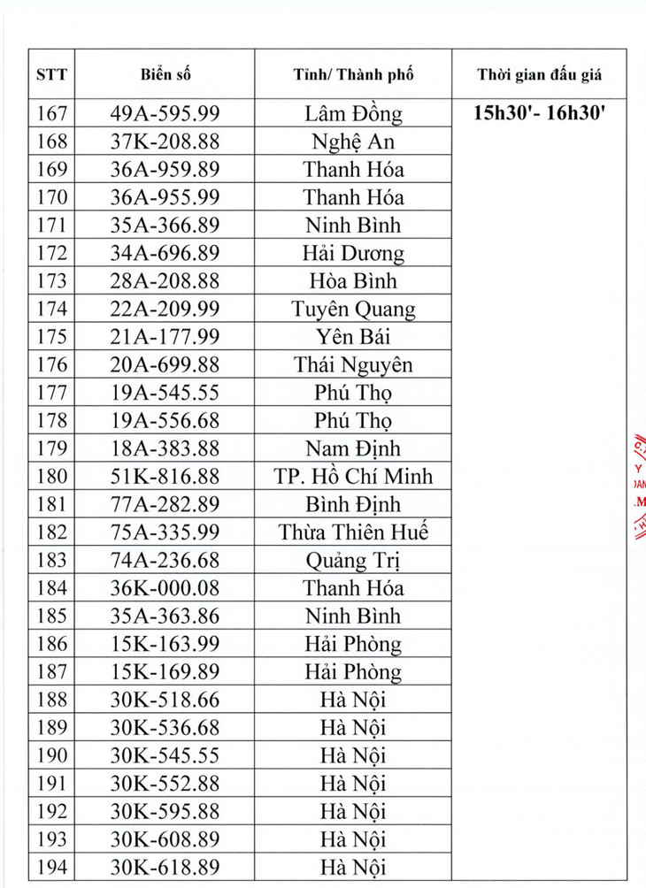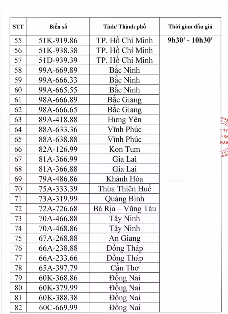 | Danh sách 212 biển số xe đấu giá ngày 18/10 |